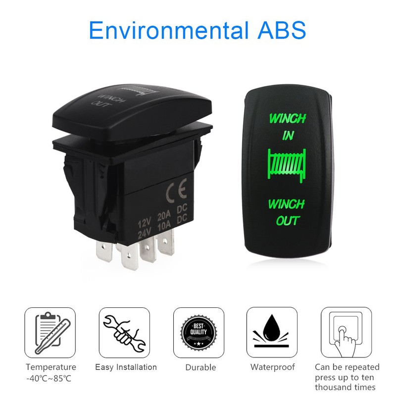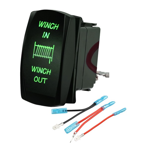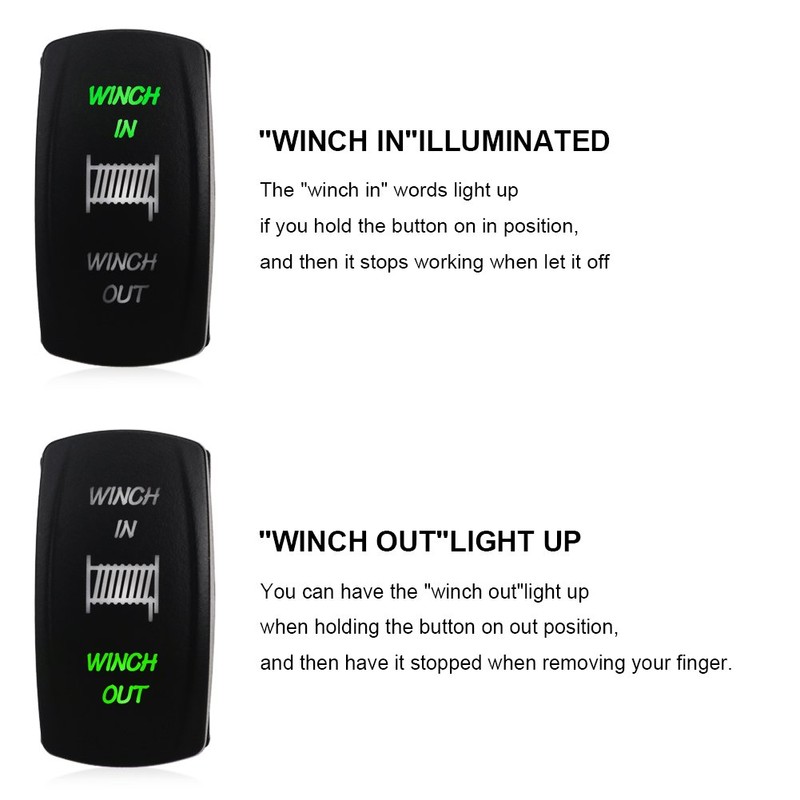 WATERWICH 7 pin Momentary Winch In Out Rocker Toggle Switch Waterproof DC 20A 12V/10A 24V Black Shell/ON-OFF-ON DPDT illuminated Rocker Switch For Auto Truck Boat Marine Off Road (Green)