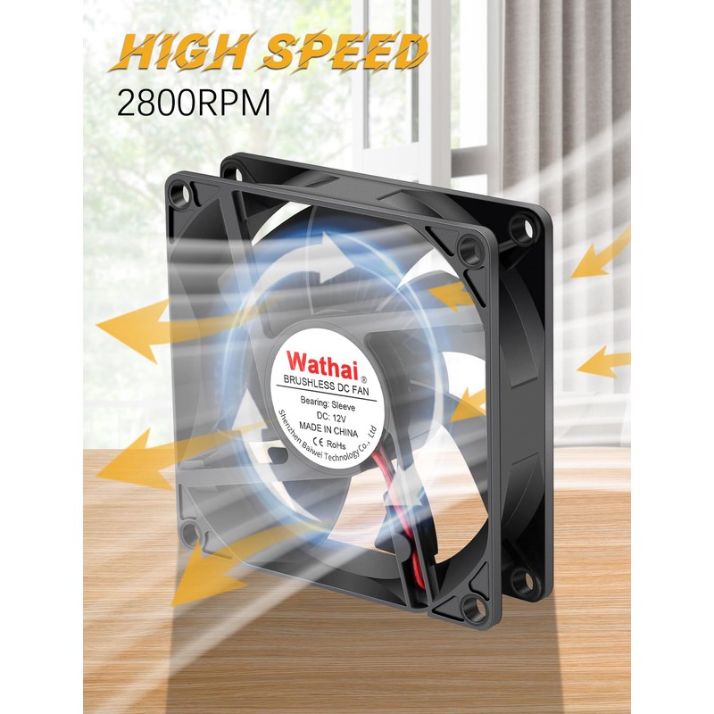 Wathai 80mm x 20mm 8020 12V DC Cooling Fan 2Pin High Preformance Brushless Fan 12 Volt