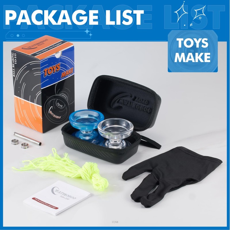 - Watieoboo-P02 ヨーヨーキットには、切り替え可能なデュアルモードヨーヨーが 2 つ含まれています。これにより、反応の良いヨーヨーと静かなヨーヨーを簡単に切り替えることができます。このシリーズには、クリスタルヨーヨーとブルークリスタルヨーヨーが含まれており、大人と子供の両方のヨーヨー愛好家に適しています。デュアルモード変換の場合は、ベアリングを装備されているベアリングと交換するだけです。フラットベアリングタイプは応答速度が速く、初心者に適しています。 Uベアリングは上級プレイヤーの練習や競技に適しています。また、カーボンファイバーデザインのデュアルヨーヨーバッグ、プロ仕様のヨーヨーグローブ、プロ仕様のヨーヨーストリング10本、ステンレススチールベアリング交換ツールも付属します