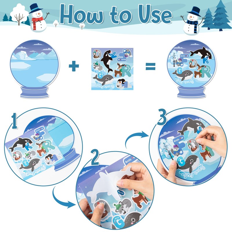 - Alphabet Learning Design: Polar animal alphabet early learning scene stickers have brightly colored scenes and rich snowy scenery in addition to a series of imaginative and unique arctic animal alphabet cartoon patterns designed so as to stimulate your child's creativity and cognitive skills.