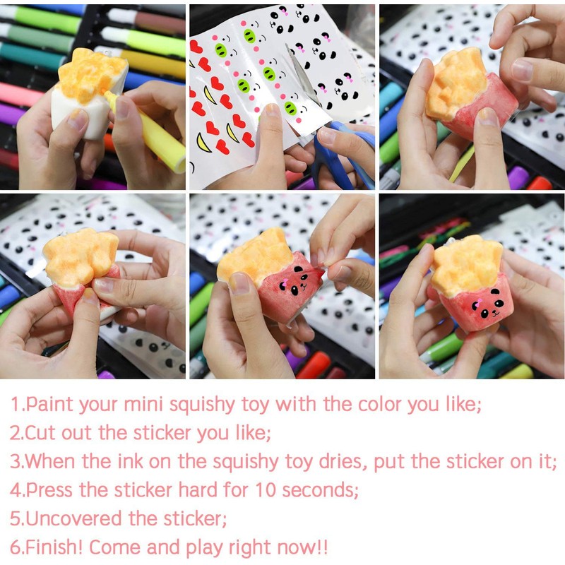 - 【DIY Squishies Set】Cream Scented. Used for gifts or collecting. You can DIY your favorite pattern with the permanent marker and stickers.It will get much fun.