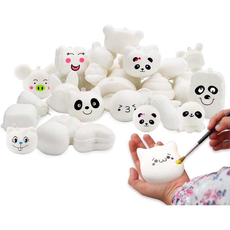 - 【Pattern:】Random 30 Pcs Mini Squishys; All the colors are whtie.Note:The paint and paintbrush are not included.