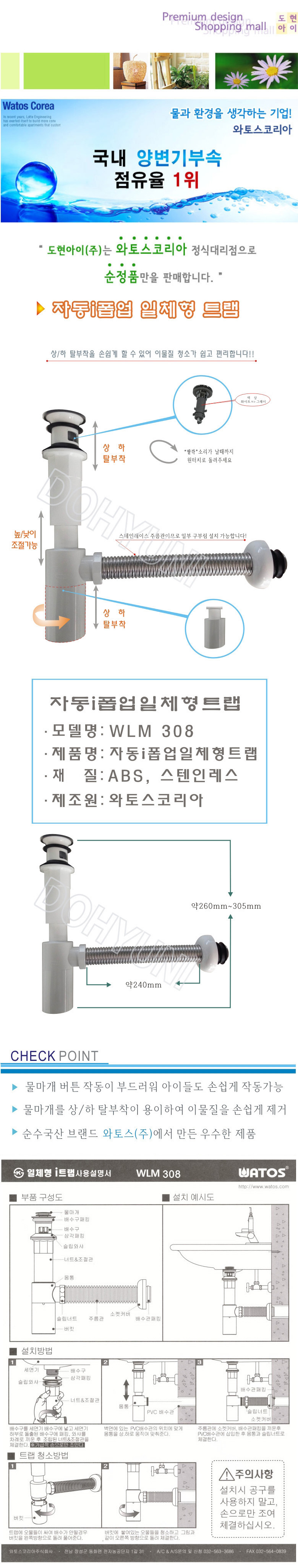 Watos WLM308 automatic i-pop-up integrated trap (for wall piping)/Watos genuine product/domestic washbasin accessories / 와토스 WLM308 자동i폽업일체형트랩(벽배관용)/와토스정품/국산세면기부속