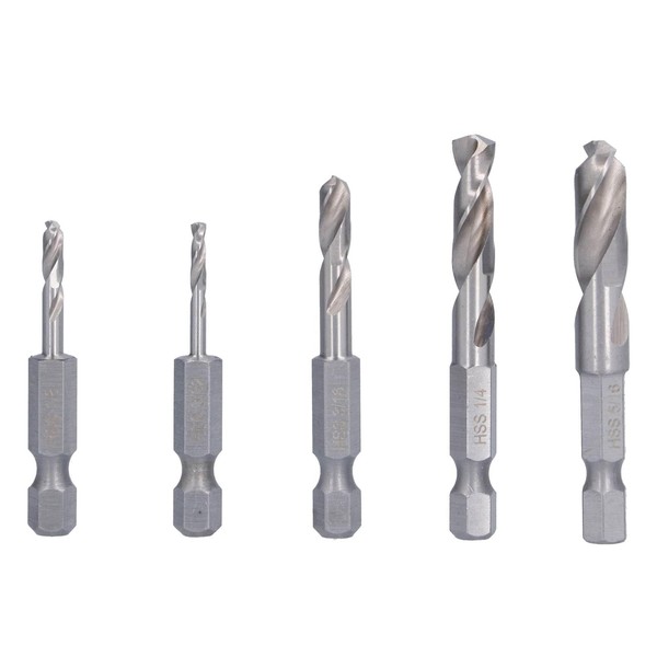 Watris Veiyi 5 Pieces Angle Drill Bit Hex Shank Drill Bit for Machining and Drilling 1/4, 1/8, 3/16, 5/16, 3/32 Inch