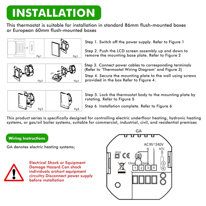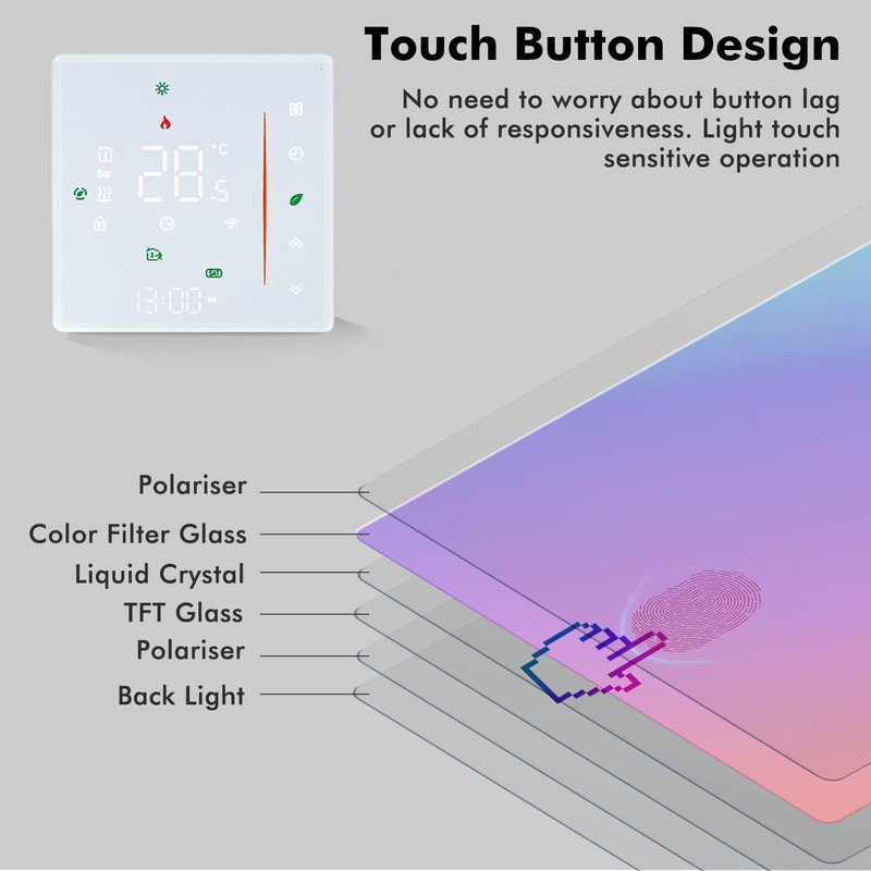 - Application scenarios: This intelligent heating thermostat for underfloor heating has been specially developed for underfloor heating and is suitable for the requirements of heat management in residential buildings, commercial complexes and municipal projects