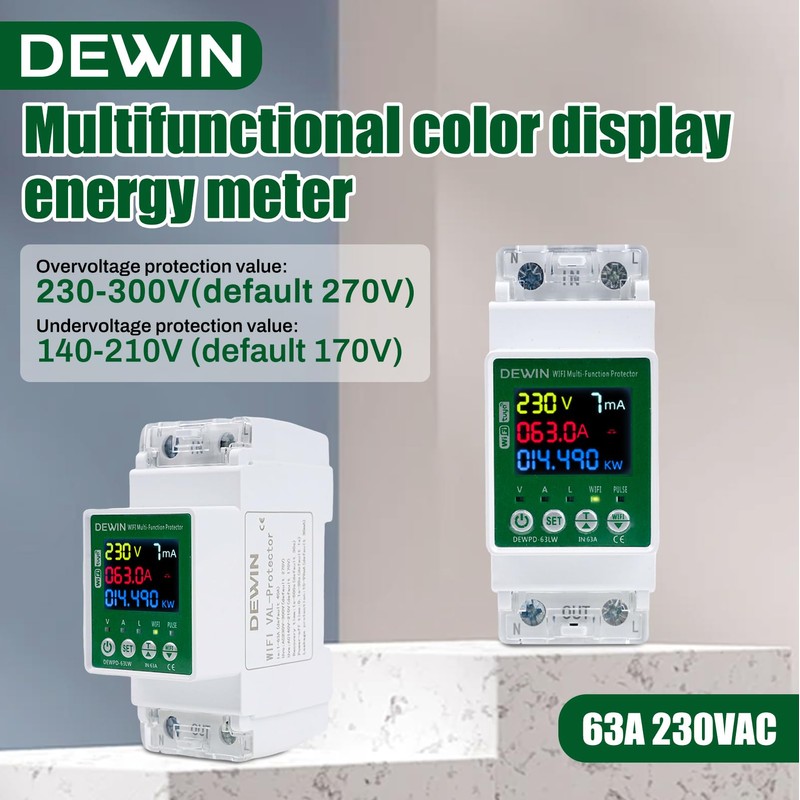 - Intelligent protection: the WLAN power meter DIN rail has surge protection, undervoltage protection, overcurrent protection as well as adjustable voltage and current functions for safe and reliable use