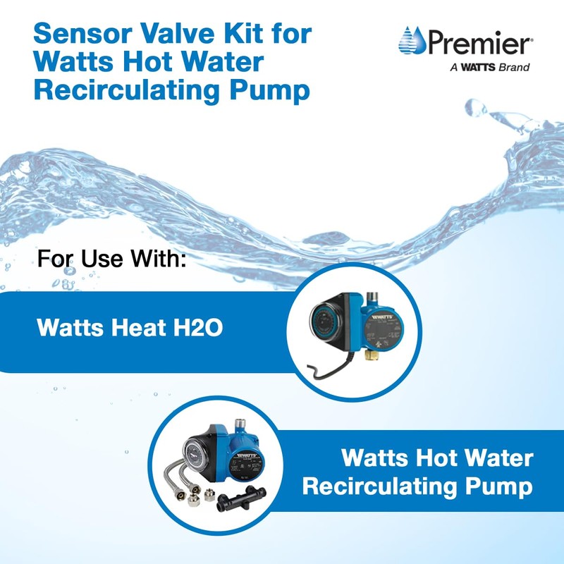 The Watts Premier Sensor Valve Kit is designed for homes with a branched hot water line. The kit includes a sensor valve, two 12 inch supply lines with fittings and two mounting screws. Simple to install, this kit does not require any additional pumps for your hot water line. Must have the Watts Instant Hot Water Recirculation Pump installed.