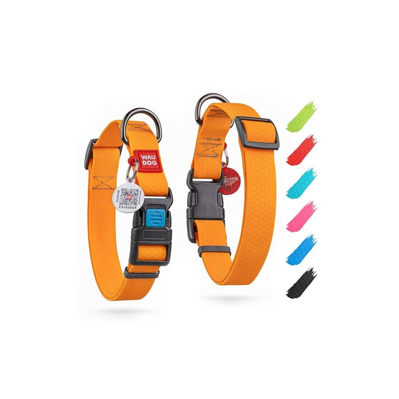 WAUDOG Dog Collar Waterproof Adjustable Dog Collar Large Dog Collar Small Dog Collars & Puppy Collar with Plastic Clasp