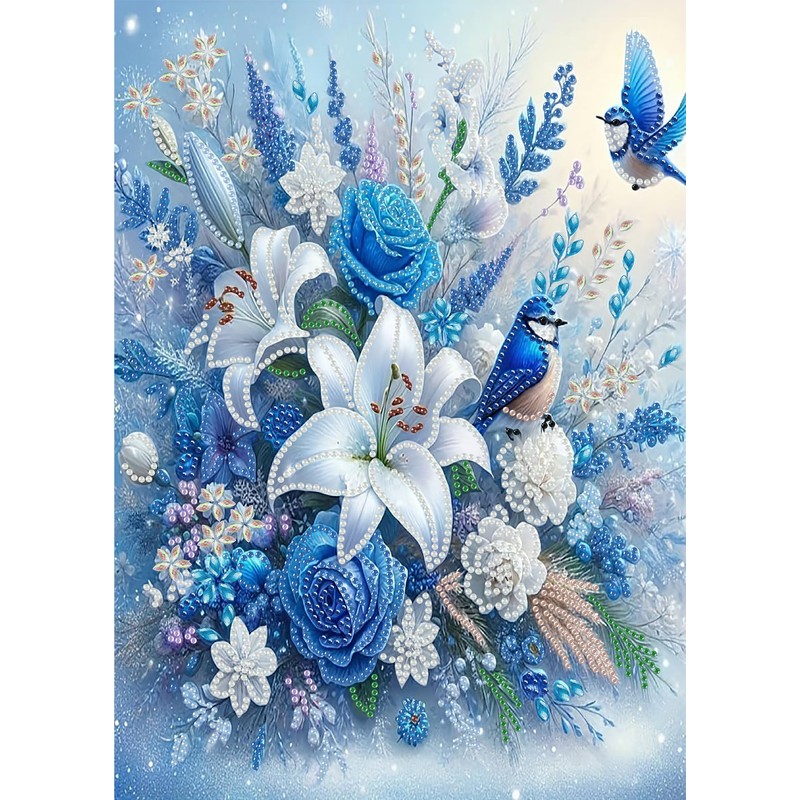 wavaiov 5D Diamond Painting Kits for Adult, Birds Flower Diamond Art Kits for Beginners, DIY Special Shape Drill Floral Diamond Dot Gem Art Kits for Home Decor 12x16Inch