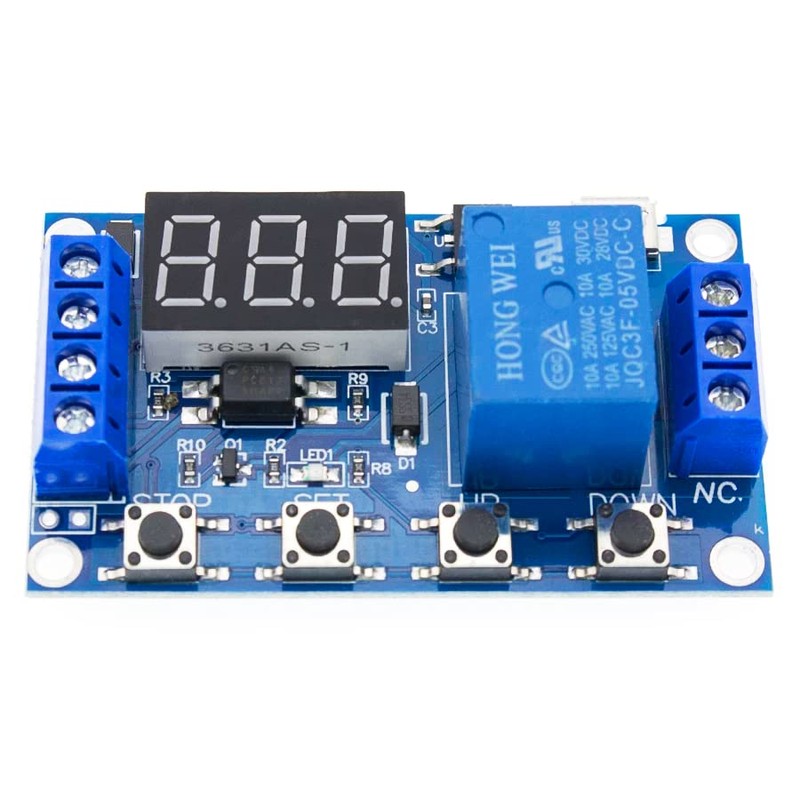 - A highly functional relay module that can set timer in 0.1 second to 999 minute increments. Supports 6-30V and provides high speed on/off