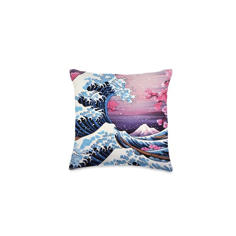 Wave Bloom Vibes Artistry Sakura's Vibrant Colors Wave Japanese's Modern Grace Throw Pillow, 16x16, Multicolor