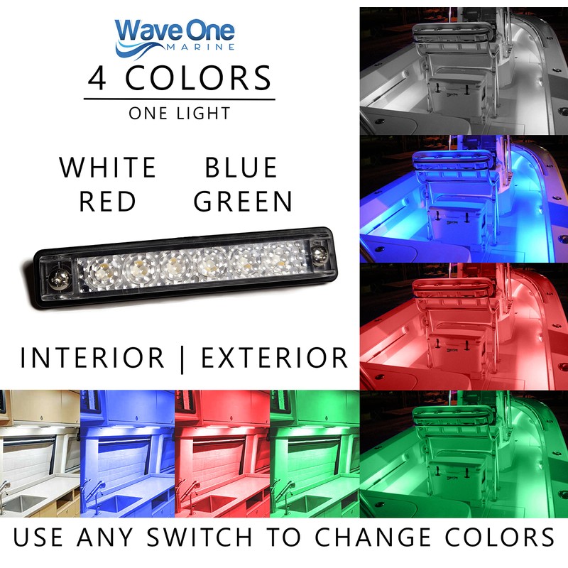 - USA BASED, DESIGNED & TESTED: Sold Individually (One Light Per Order) : Our 8" White - Blue - Red - Green surface mount LED marine courtesy light has features that others don't. Our light features four color switching capability using any external switch. It's a premium upgrade to any boat, yacht, sailboat, or pontoon.