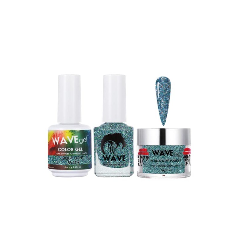 WAVEGEL Soak-Off Gel, Nail Lacquer & Acrylic/Dip Powder Matching Set - Simplicity Collection - #W103 Aqua Light