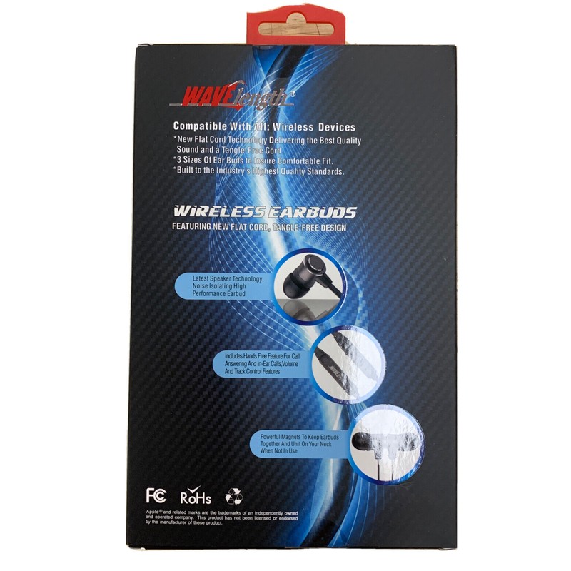 Wavelength 2ea ~ Wavelength ~ Wireless Earbuds ~ Flat, Tangle Free Cord