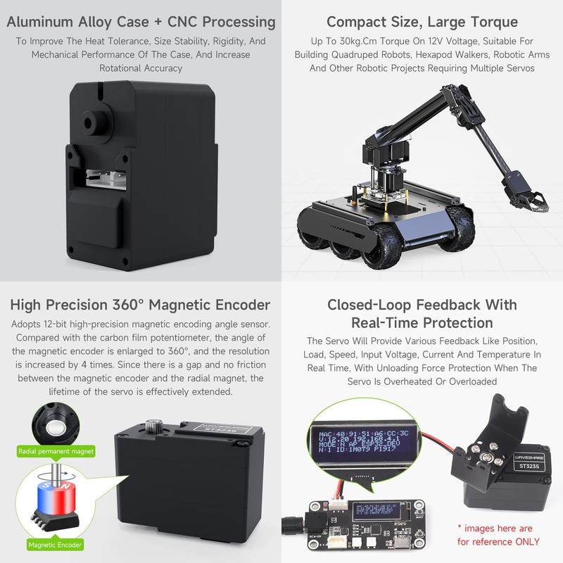 Waveshare 30 kg.cm ST3235 Serial Bus Servo, High Precision and Large Torque, Aluminium Alloy Case, with Programmable 360 Degrees Magnetic Encoder, Multiple Operation Modes Switchable