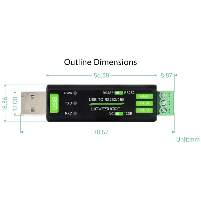 Waveshare Adaptador USB a RS485 o RS232, Compatible con Mac, Linux, Android, Windows 11/10/8.1/8/7