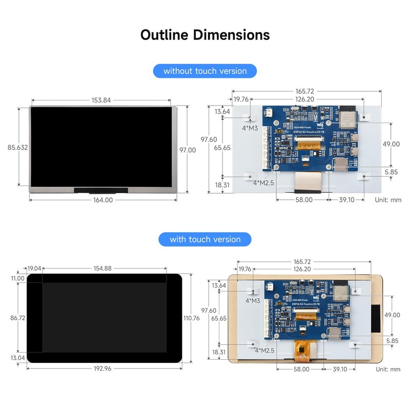 - 7inch LCD Display: Offers a 1024x600 resolution, providing clear and sharp visuals for various embedded projects.
