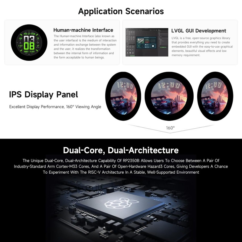 - High-Performance MCU Board: The 2.8inch RP2350 Touch LCD is a high-performance, highly integrated MCU board designed by Waveshare, featuring an onboard 2.8-inch LCD screen and high-capacity Flash memory, making it ideal for quick development of HMI and RP2350 applications.