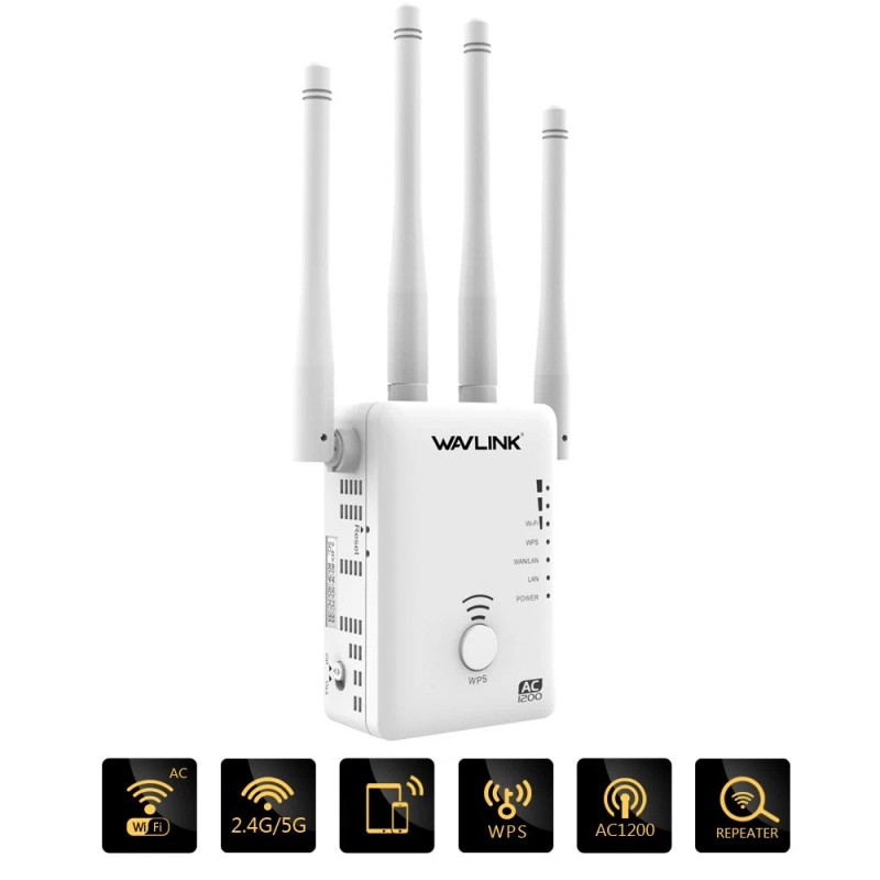 - Features: 1200Mbps, High Gain, Dual Band Wireless Range Extender, Wifi Repeater, Supports 802.11ac, WPS Button, with 4 External Antennas