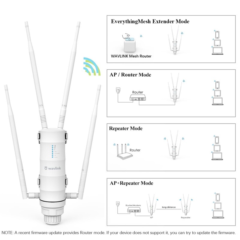 • [Multiple Modes] Supports multiple modes (Router/ AP/ Bridge/ WISP) to meet your different needs and apply to more outdoor connection scenarios.