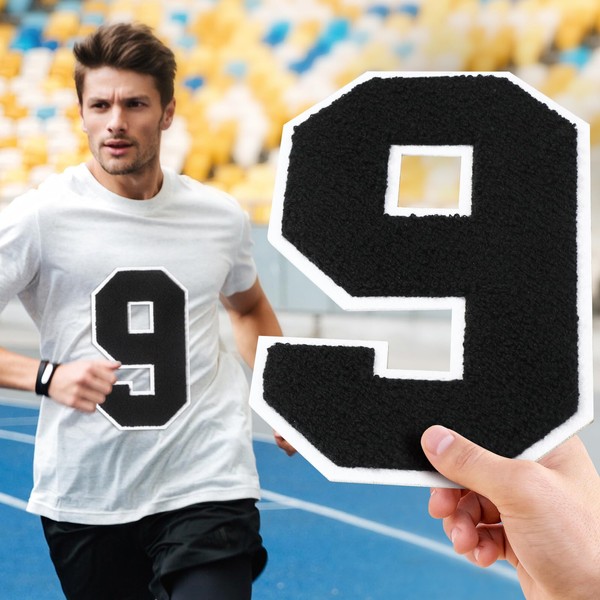 Wavwavw 8 Inch Chenille Number Patches 2 Pcs Large Self Adhesive Iron on Patches Black Sew on Numbers for Fabric Jersey T-Shirt Clothing DIY Decorations(Number 9)