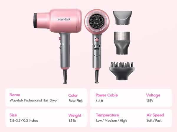 Wavytalk Professional Ionic Hair Dryer with Diffuser - Color: rose gold