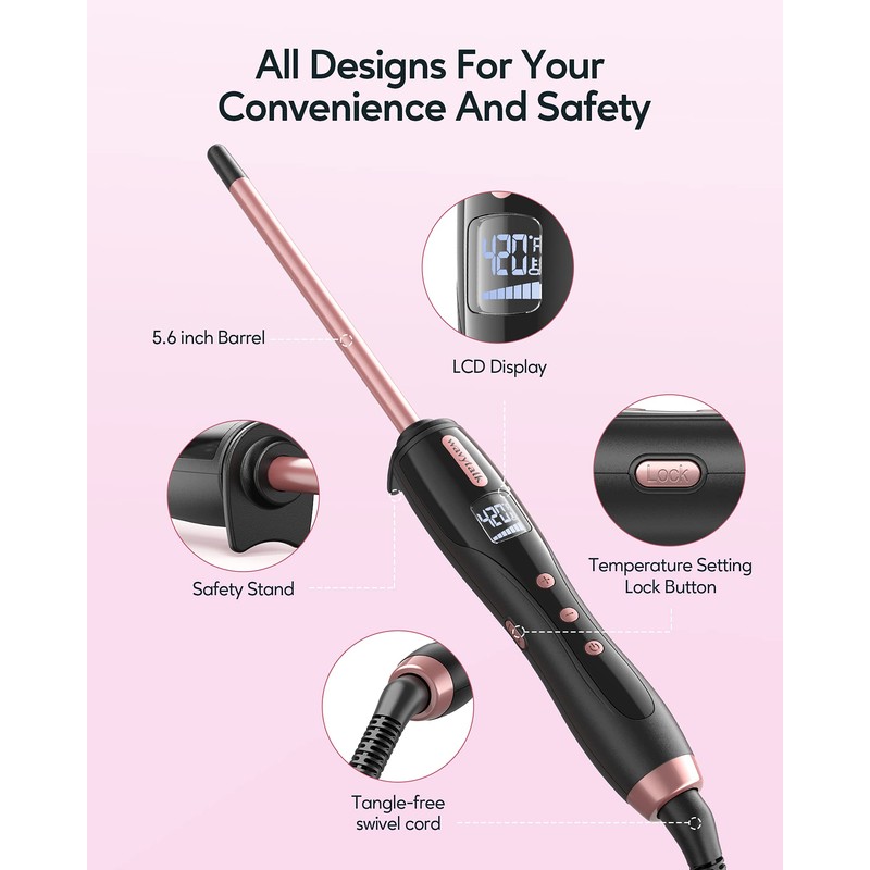 - LCD Digital Display & Temperature Settings: This / inch small curling iron with adjustable temperatures provides precise control ( H to H) , making it suitable for thin, normal and thick, coarse hair