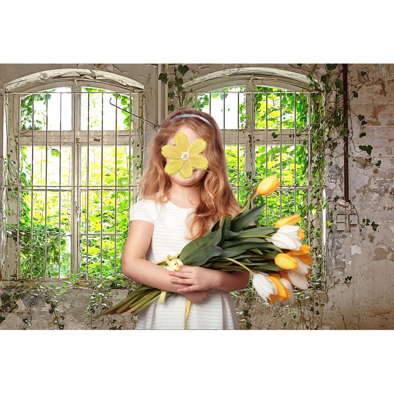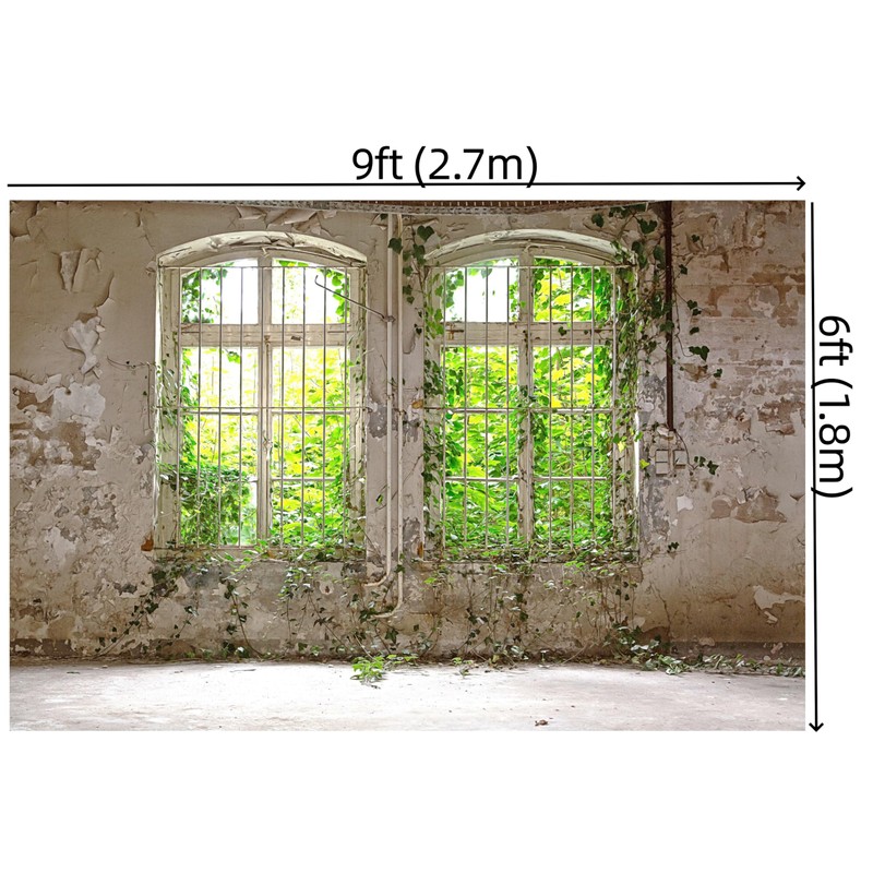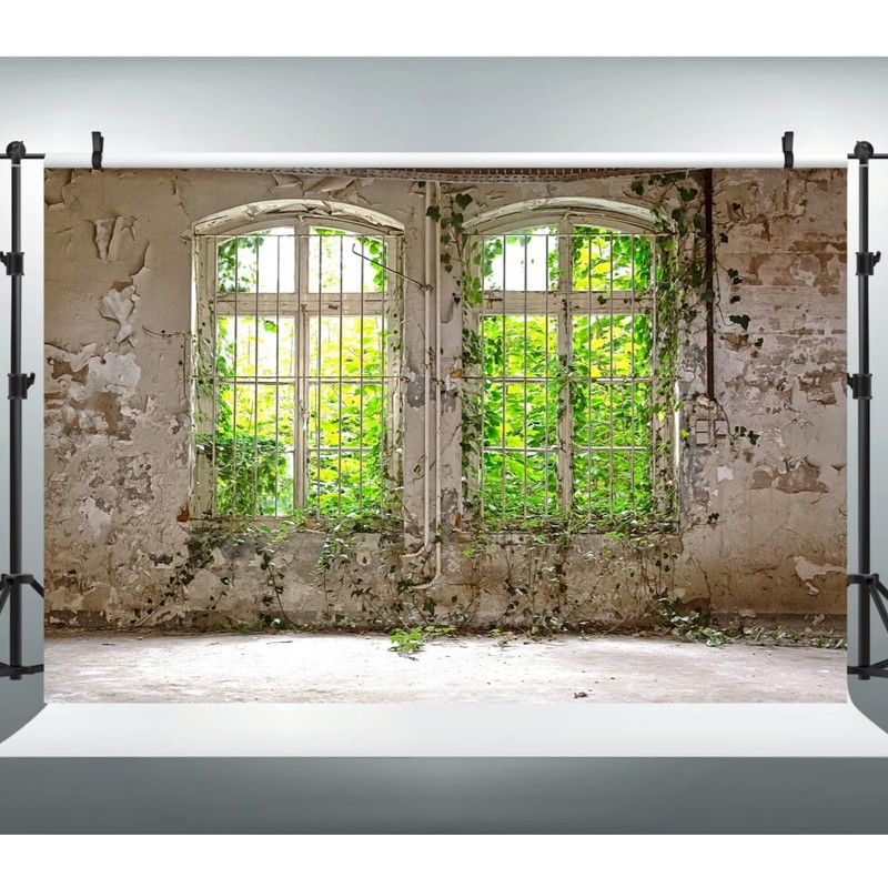 WaW 2.7 x 1.8 m Rustic Window Spring Photo Background Shabby Chic Concrete Flowers Backgrounds for Photo Studios, Children, Portrait, Photo Wall, Photo Box, Video Background, Grey