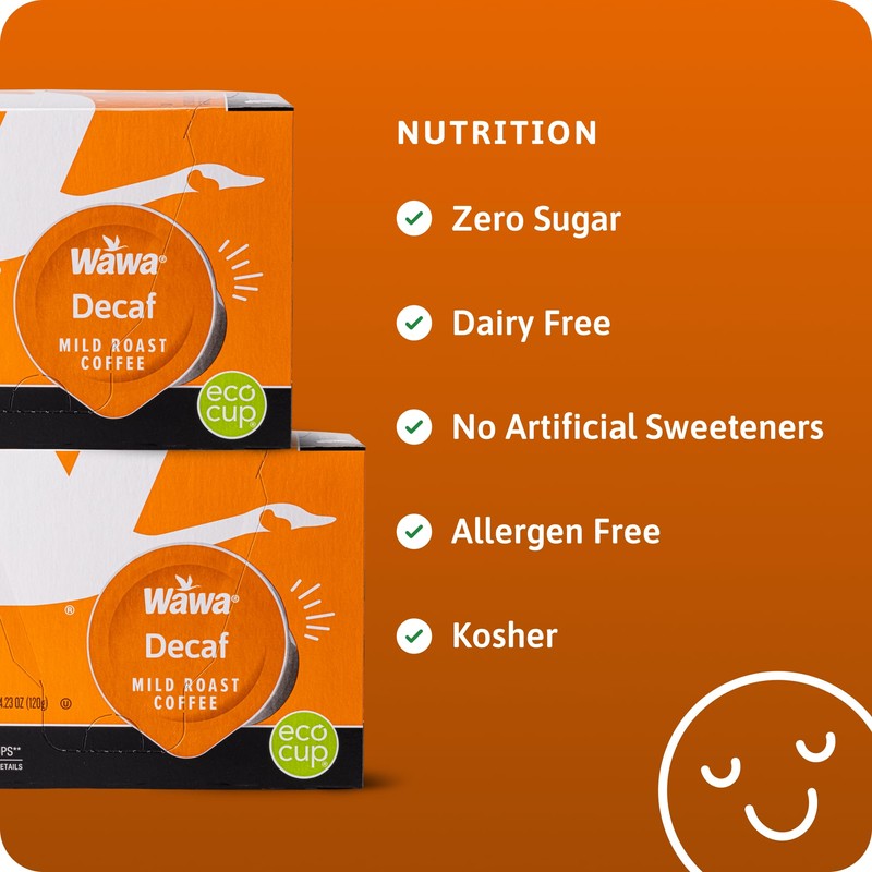 Wawa Mild Roast Single Cup Decaf Coffee Pods, 72 Pods, 6 Boxes, Regular Smooth & Balanced Classic Decaf Blend, Single Serve, 100% More Responsibly Sourced from Rainforest Alliance Certified Farms