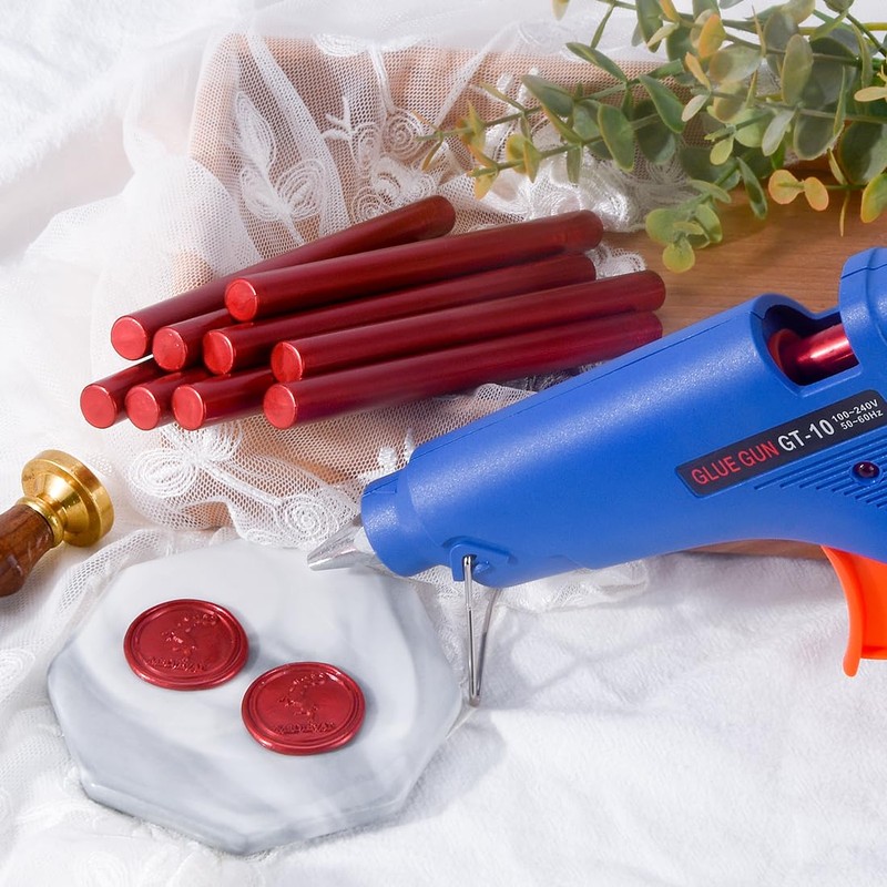 - PACKAGE: This sealing wax kit has 1pcs standard size sealing gun, 10pcs suitable size wax sticks in blood red color. No worry of the mismatch between hot melting glue gun and wax sticks