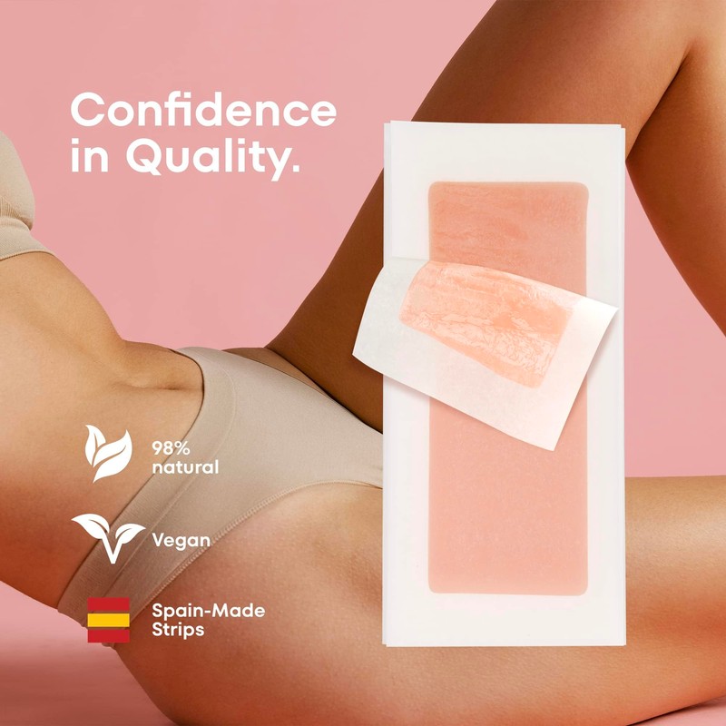 - Vegan 98% Natural Ingredients & Good for Sensitive Skin: Our wax strips are crafted with 98% natural ingredients, ensuring a gentle and non-toxic hair removal process. Vegan-friendly and perfect for sensitive skin, these strips provide a safe and soft waxing experience for females.
