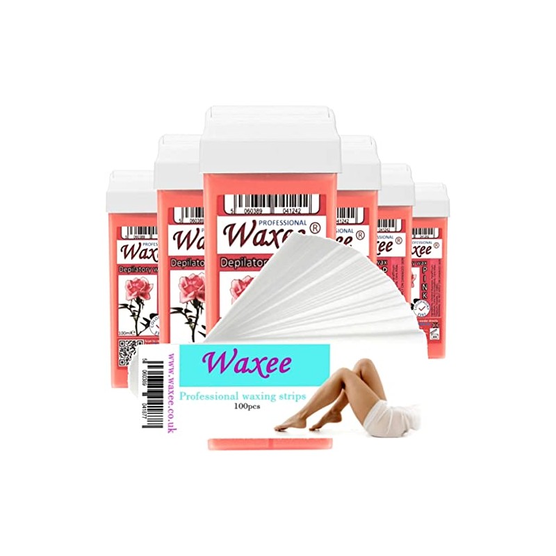 Waxee 6x 100ml roll-on wax roller wax cartridge refill + 100 waxing strips from UK brand Waxee! (Pink)