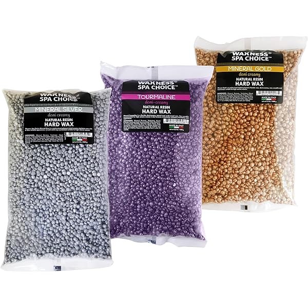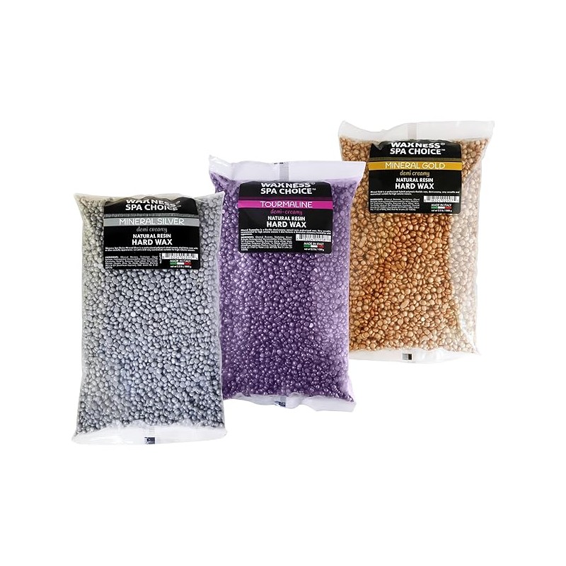 Waxness Spa Choice Assorted Hard Wax Beads 2.2 lb 1 kg Pack of 3 - Silver, Tourmaline, Gold