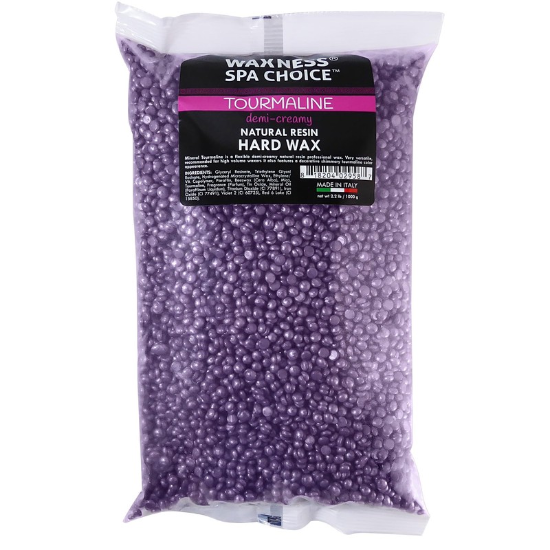 - Waxness Spa Choice Tourmaline: -Superior Hybrid Polymeric Flexible Natural Resin Base, -Shimmery with metallic appearance, -Demi Creamy texture, suitable for all areas, -Ideal for High Volume Waxers