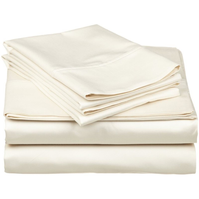 Way Fair Sheet Set Queen Size Ivory Solid 100% Cotton 600 Thread-Count (15" Deep Pocket Drop) by