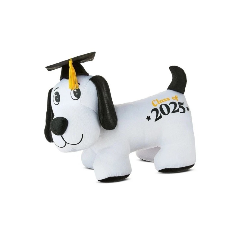 Way To Celebrate Graduation Class of 2025 Black and White Autograph Puppy Plush with Marker 12"