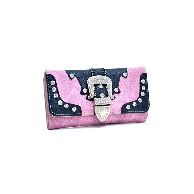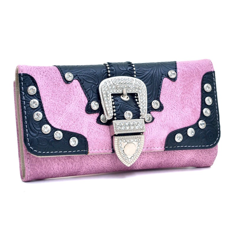 Way2Culture Western Rhinestone Bling Buckle Accent Wallet - Pink