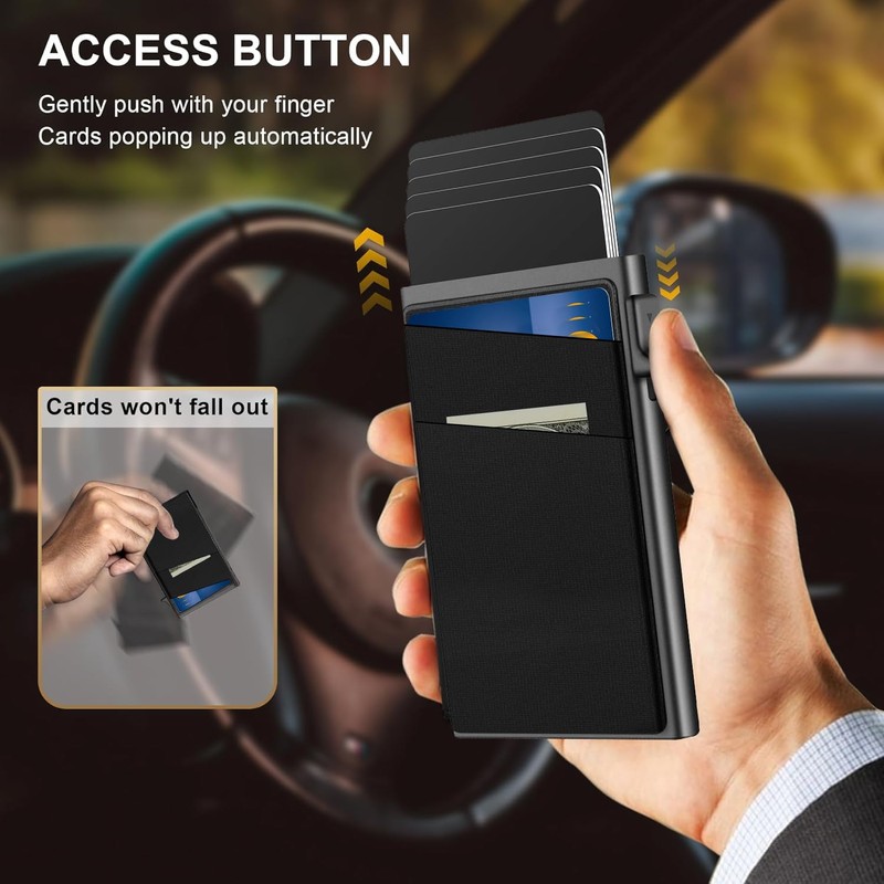 WAYAMY Slim Tarjetero Metalico en Efectivo, Antirrobo con Protección RFID, Aluminio Automática Pop-up Tarjetero, Tarjeteros para Tarjetas con Múltiples Ranuras para Tarjetas