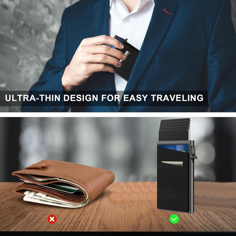 • 【FÁCIL ACCESO Y USO CÓMODO】Acceso Rápido - El mecanismo deslizante lateral le permite operar con una sola mano, la forma más eficiente de abrir todas las tarjetas fácilmente.. Perfecto como porta tarjetas para profesionales y viajeros.