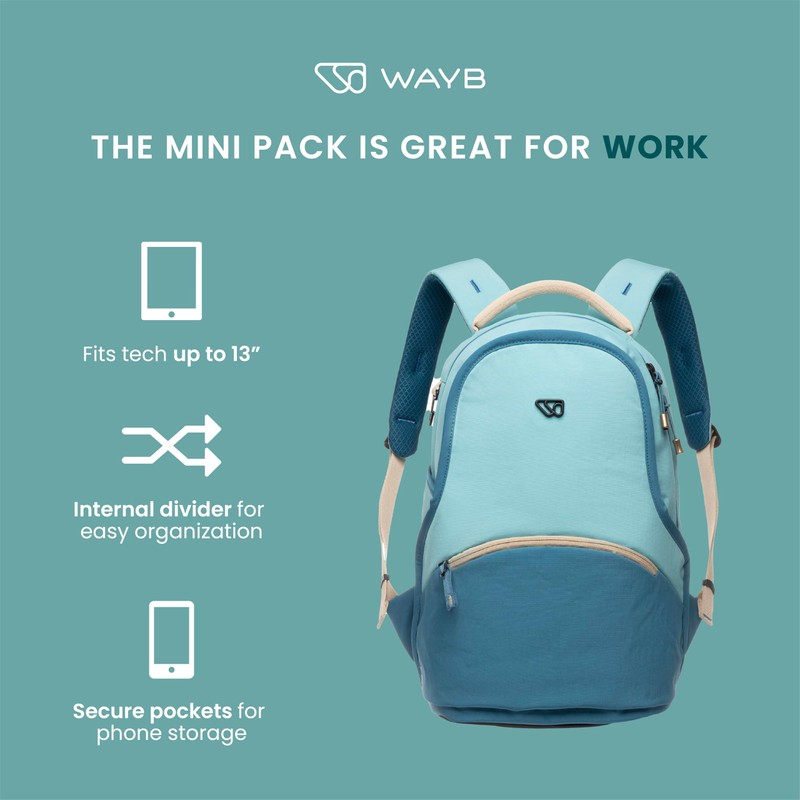 WAYB Mini Backpack | Fits 13" Tablet | Durable & Water-Resistant | Lightweight and Slim Day Pack | 15L Capacity