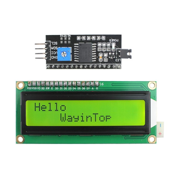 WayinTop 1602 LCD Display Module 16x2 Characters Green Backlit + IIC/I2C/TWI/SPI Serial Interface Serial I/F Module Port (Green)