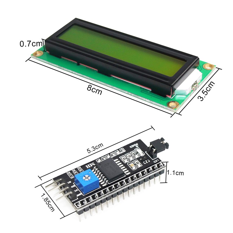 - Package: 1 x LCD1602 character display module; 1 x I2C serial interface module
