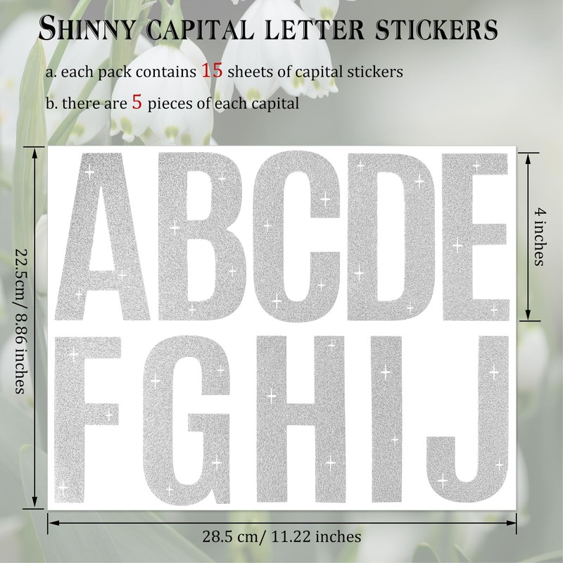 Waynoda 155 Pcs 15 Sheets Glitter Bulletin Board Letters 4 Inch Letter Stickers for Poster Board Stick on Letters for Bulletin Board Display Classroom School Home Decor(Silver)