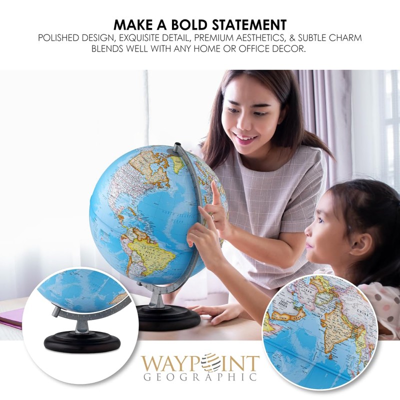 • Decorative Globe: Waypoint Geographic’s Mariner Globe is a stunning decorative piece, perfect for any home or office decor. Featuring a sleek and modern design, the reference globe is sure to impress with its beautiful look and practical features.