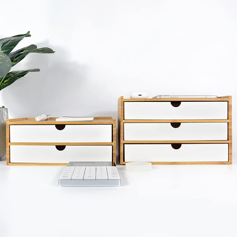 WAYUTO 2-Tier Bamboo Desktop Organizer Simple Wooden Tabletop Storage Organization Box Multi-Scene Drawer Units for Home Bathroom Office White 2-Drawer