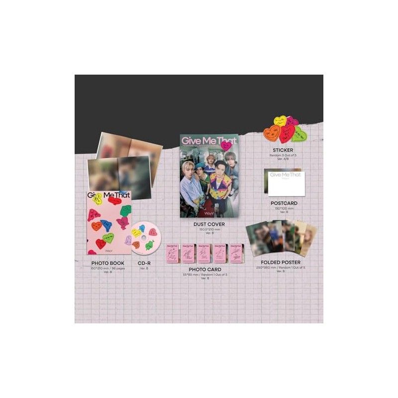 WayV - Mini 5th Album [Give Me That] (A Ver) Dust Cover + Photo Book + CD-R + Photo Card + Folded Poster + Postcard + Sticker + 3 Extra Photocards