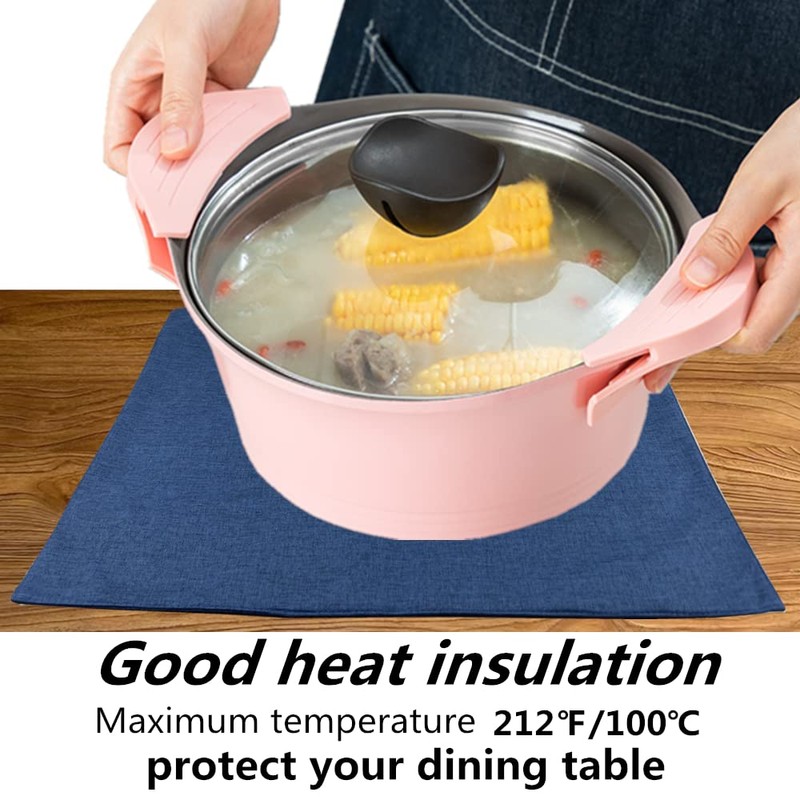 - Protective effect:These beautiful bright heat resistant placemats protect the table and tablecloth from high temperature(≤212℉) and knives forks scratches.Good water absorption,can absorb a small amount of water and stains spilled on the placemat,so that the tableware in a dry and clean environment,to create a good dining atmosphere.Good non-slip function,prevent the tableware on the table sliding,reduce the tableware broken and damaged