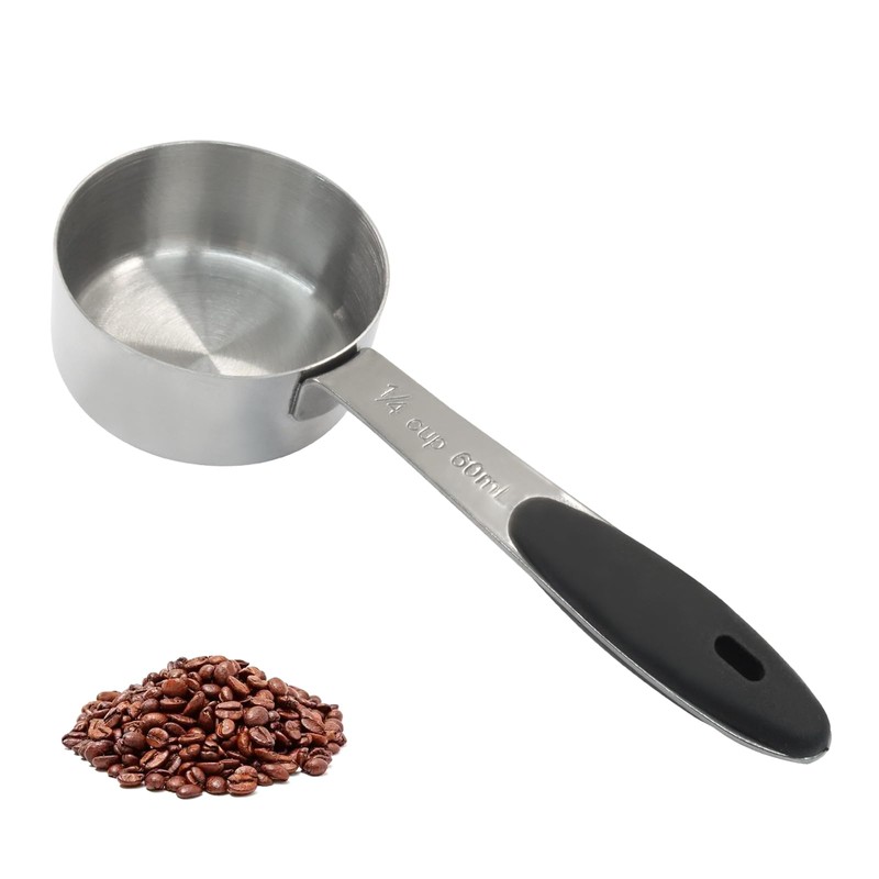 Waziaqoc 1/4 Cup Coffee Measuring Cup, 60ml Stainless Steel Measuring Scoop, 2 oz Dog Cat Food Scoop with Black Comfortable Handle for Cooking, Pets, Coffee