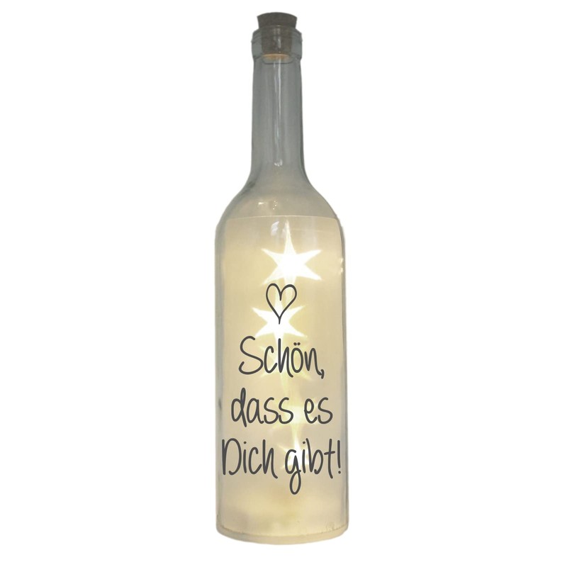 - The glass bottle has the following imprint: Schön, dass es Dich gibt! Theme: best best friends boyfriend girlfriend human brother sister dad mum neighbour neighbour friendship gifts, print colour: grey