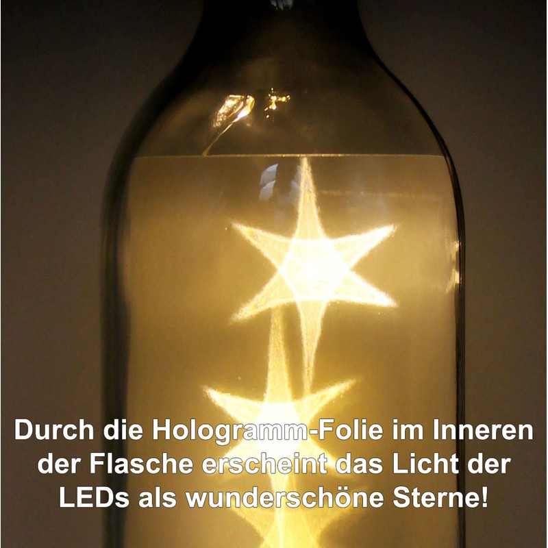- LED bottle light with integrated string lights and hologram effect. This makes visually sparkling stars. Printed with a motif of WB wohn trends.